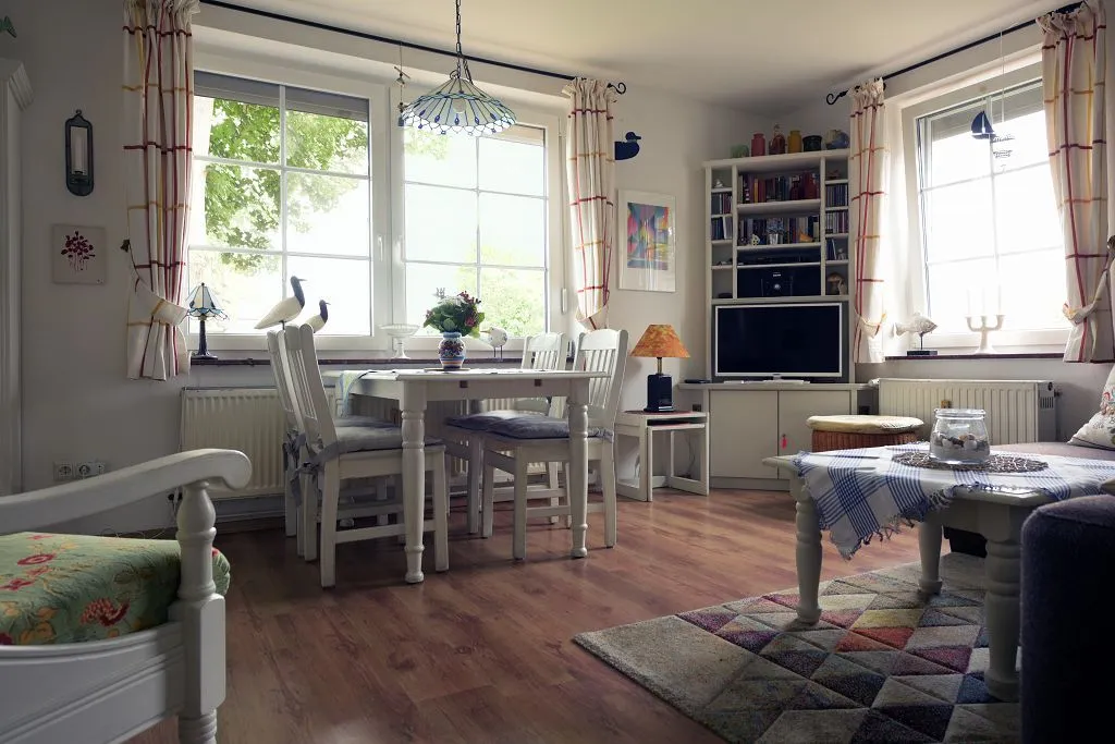 Das Ferienhaus Achter de Kark ist ein charmantes idyllisches Häuschen in zentraler ruhiger Lage. Das Haus ist für max. 6 Personen geeignet. Kommen Sie herein in das urgemütlich eingerichtete Friesenhaus. Vom Flur gelangen Sie in den großzügigen Wohn- und Essbereich. Der vorhandene Kamin (Brennmaterial bitte selbst mitbringen) sorgt für traumhafte Abende bei einem Gläschen Wein. Vom Essplatz haben Sie einen wunderschönen Blick in den Vorgarten und auf die Greetsieler Gracht. Ruhen Sie sich im Wohnbereich in der gemütlichen Sitzecke aus, hören Sie Musik oder sehen Sie sich Ihre Lieblingsendung im TV an. Die Küche bietet alles was man heute erwarten kann: Spülmaschine, Mikrowelle, ausreichend Geschirr, Besteck, Töpfe. In den 2 Schlafzimmern mit jeweils einem Doppelbett finden Sie die nächtliche Ruhe, um am nächsten Tag wieder auf Entdeckungsreise zu gehen. Das renovierte Badezimmer ist mit einer neuen Dusche ausgestattet. Im Abstellraum neben der Küche sind Staubsauger und kleine Putzutensilien untergebracht. Die überdachte Terrasse komplettiert das Ferienobjekt. Hier können Sie bei jedem Wetter die Seele baumeln lassen und die frische Nordseeluft genießen. Im angrenzenden Garten steht ein Strandkorb zum Relaxen. Außerdem sorgt ein Grillplatz (mit Steingrill) für gemütliche Grillabende.