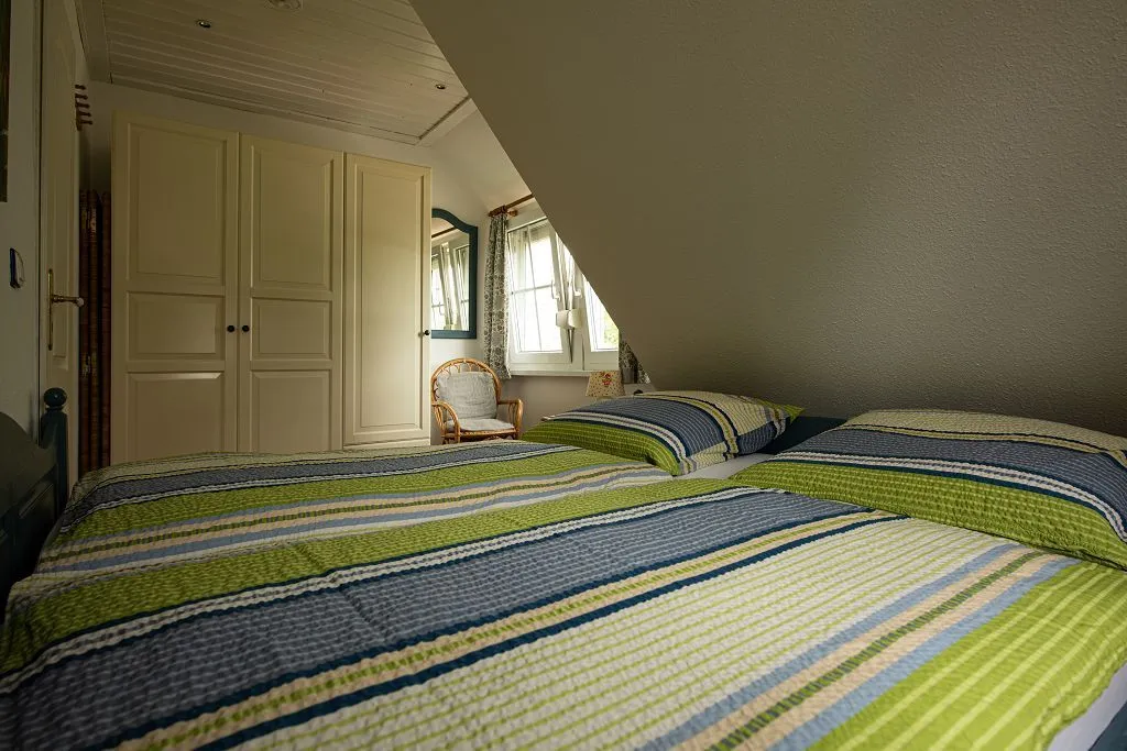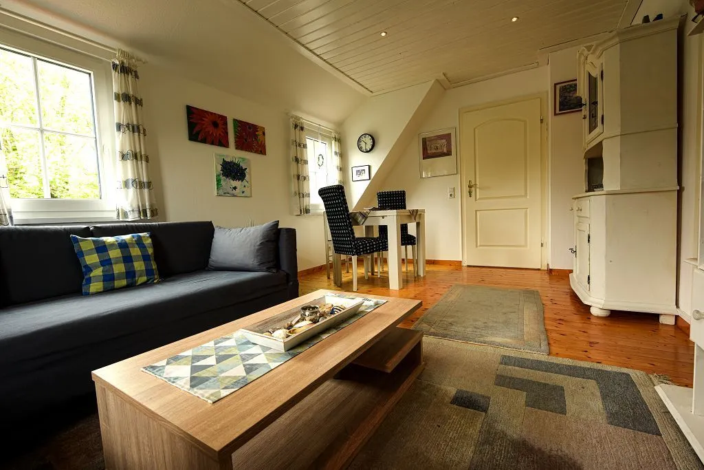 Im Obergeschoß erwartet Sie zuerst eine voll ausgestattete Küchezeile. Im Wohnzimmer mit Essecke steht das gemütliche Ecksofa zum Relaxen. HIFI und TV sind auch hier selbstverständlich. Auf dem Balkon mit Sicht in den Garten finden Sie Ruhe und Entspannung. Das Schlafzimmer ist mit einem Doppelbett ausgestattet. Das neue Duschbad vervollständigt den oberen Bereich.