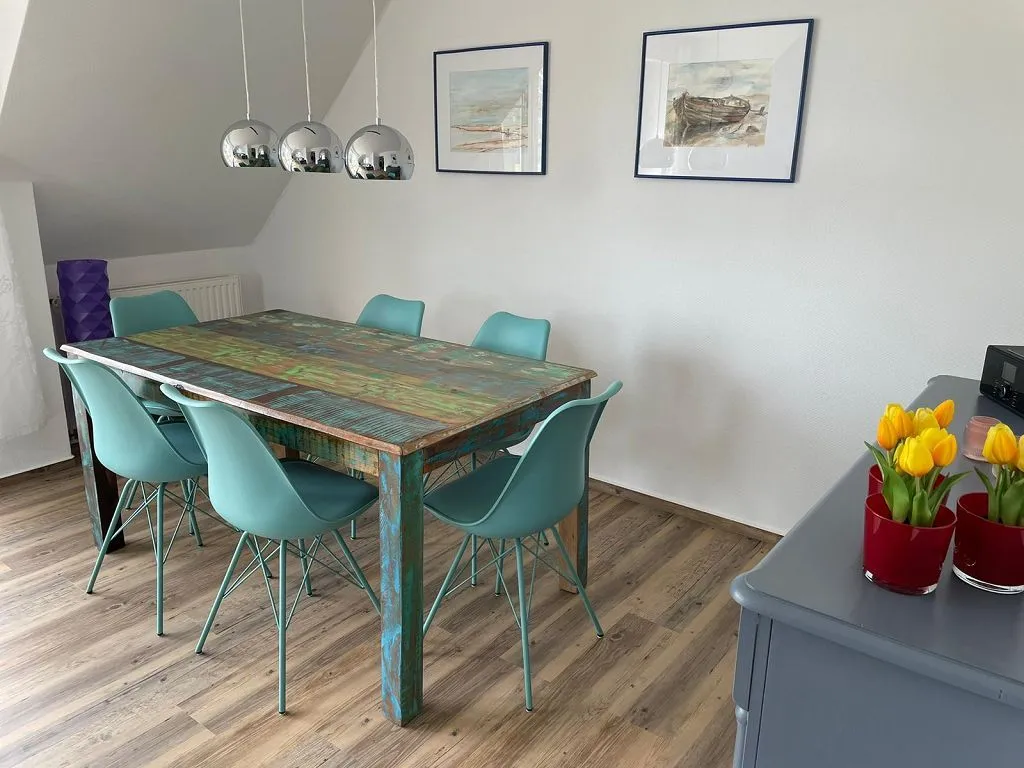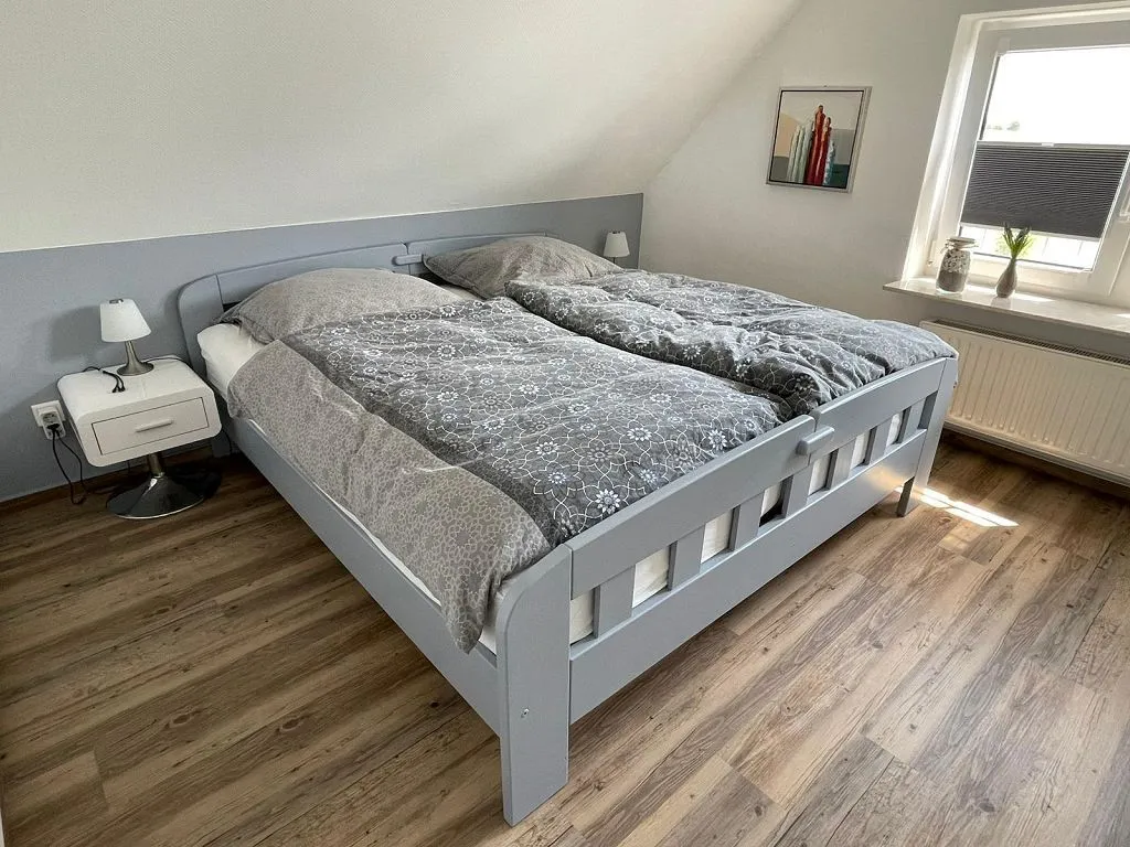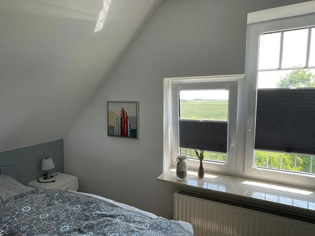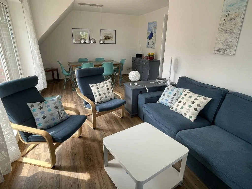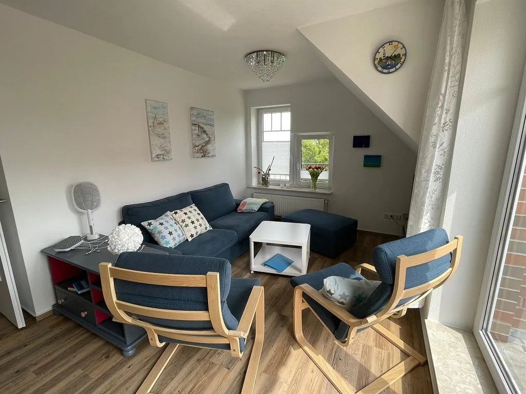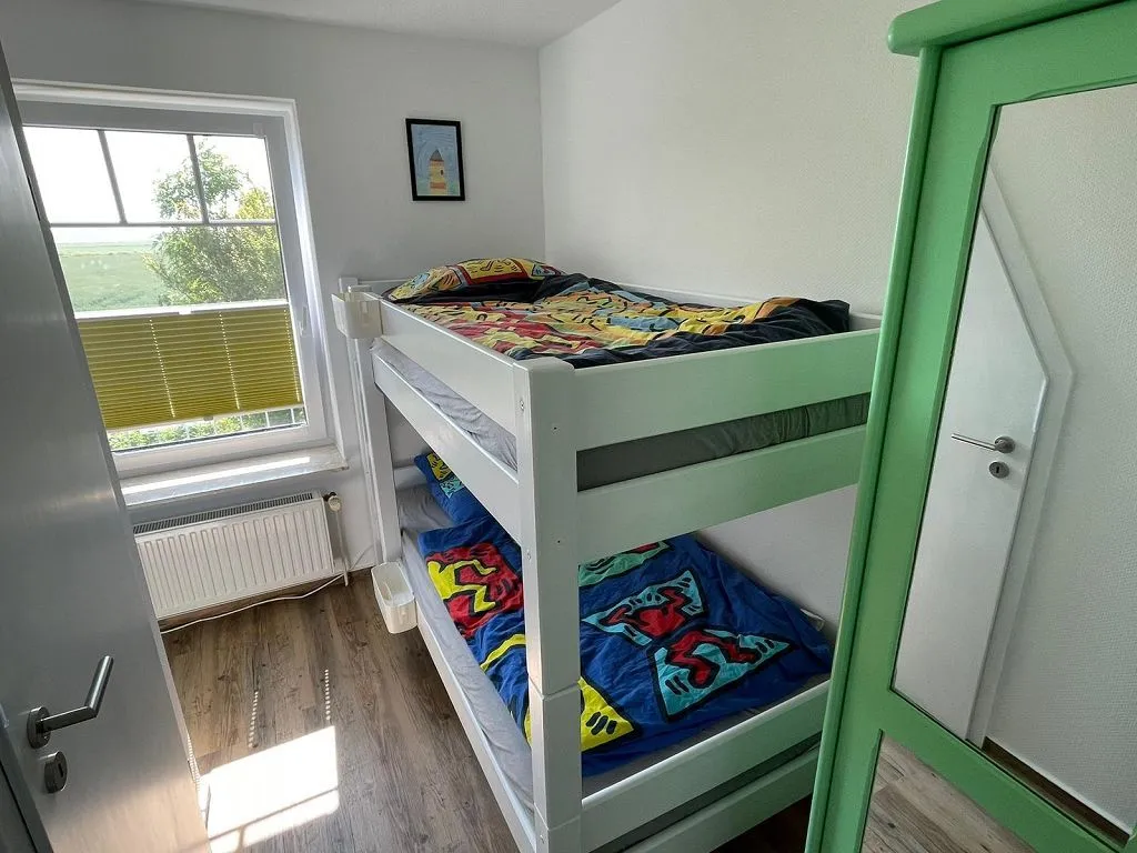 Kommen Sie herein in die im Frühjahr 2023 frisch renovierte Oberwohnung Achterliek! Über einen eigenen Hauseingang erreichen Sie über die Treppe den Flur. Die helle neue Küche lässt keine Wünsche offen und ist voll ausgestattet. Für Kaffeetrinker sind eine Senseo- sowie eine Filterkaffeemaschine vorhanden. Nebenan befindet sich das Schlafzimmer mit Doppelbett und großem Kleiderschrank, das zum Träumen und Entspannen einlädt. Gegenüber liegt das neuwertige helle Duschbad. Ideal für Kinder ist das zweite Schlafzimmer ist mit einem Etagenbett ausgestattet. Ein Sekretär und ein Kleiderschrank runden diesen Raum ab. Im großen hellen Wohn-/Essbereich können Sie die Seele baumeln lassen. Auf der gemütlichen Sofa-/Sessellandschaft können schöne Spiele- oder Klönabende verbracht werden. Ein Flachbild-TV, eine Musikanlage mit Bluetooth-Verbindung und Smartphone-Ladestationen sorgen für moderne Technik. Von hier gelangen Sie auf den großzügigen Südbalkon, der mit Gartenmöbeln, Liegestuhl und Sonnenschirm ausgestattet ist. Genießen Sie die frische Nordseeluft und die Sonnenstrahlen. Die Eigentümer haben die Wohnung liebevoll eingerichtet und dekoriert - eine Wohlfühloase! Zur Wohnung gehört ein Schuppen, wo 3 verschiedene Kinder- und 2 Erwachsenenfahrräder zur Verfügung stehen (Benutzung auf eigene Gefahr). Außerdem bietet der Raum noch Platz für 4 weitere Gästefahrräder. Der Parkplatz befindet sich direkt vor dem Haus. WLAN ist verfügbar! Haustiere sind nicht erlaubt.
