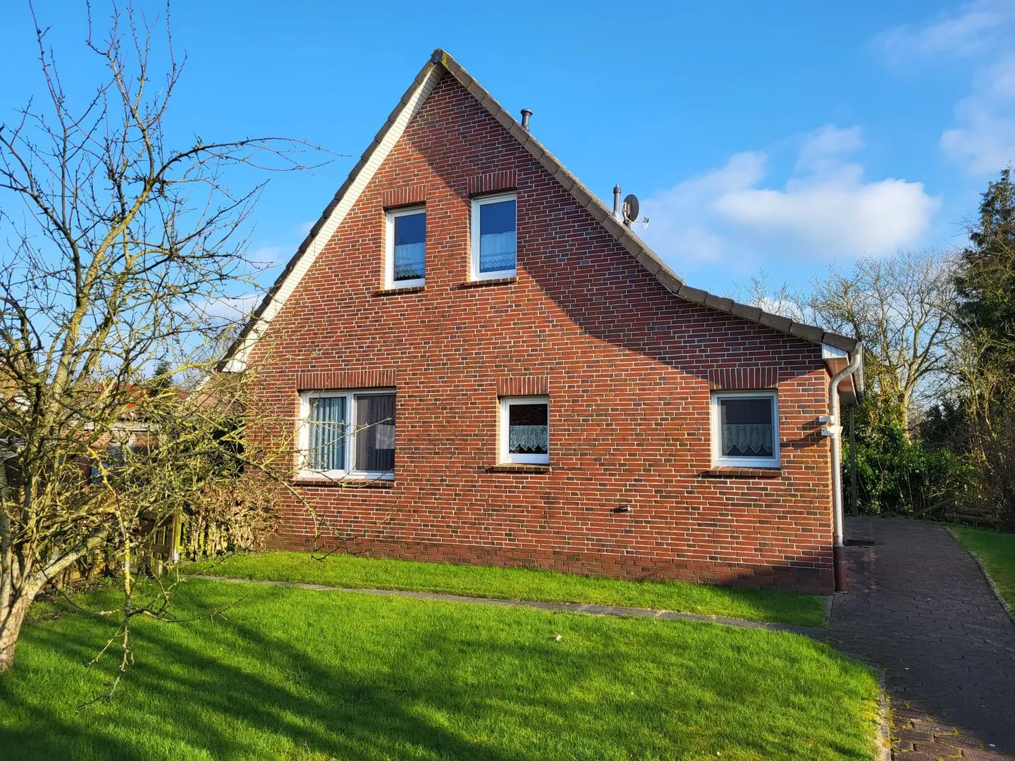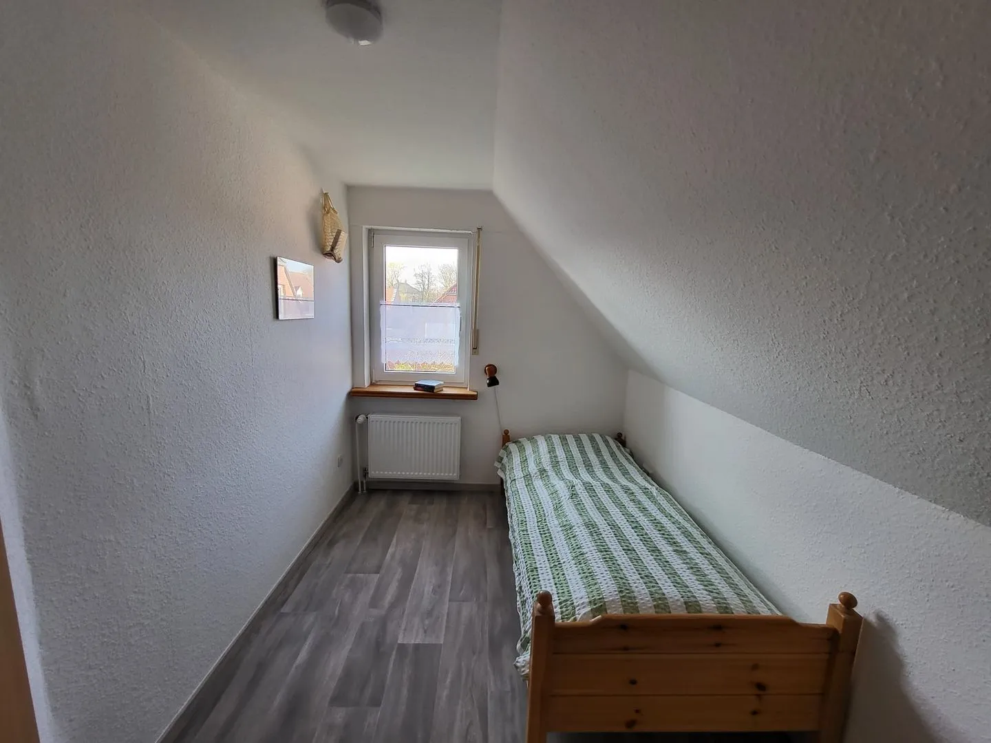 Vom Flur gelangen Sie in den Wohn-Essbereich mit Küche. Der großzügige Raum wirkt hell und freundlich. Die Balkenlage sorgt für Gemütlichkeit und Wärme. Genießen Sie auf dem Ledersofa und den 2 Sesseln gemütliche Abende, z. B. bei einem Fernsehabend mit einem Gläschen Wein. In der Küchenzeile steht alles bereit, um leckere Speisen zu kochen und dann am Esstisch mit der ganzen Familie oder mit Freunden zusammen zu essen. Klönen bei einer Tasse Ostfriesentee ist hier Pflicht. Vom Essbereich gelangen Sie auf die Terrasse, wo Sie die frische Nordseeluft und die Ruhe genießen können. Das Schlafzimmer im EG verfügt über ein Doppelbett und einen Kleiderschrank. Nebenan befindet sich das helle Duschbad. Ein kleiner Abstellraum rundet das Erdgeschoß ab. Die Treppe rauf finden Sie 2 weitere Schlafräume, eines mit Doppelbett und eines mit einem Einzelbett. Wenn Sie hier aus dem Fenster schauen, können Sie die Zwillingsmühlen entdecken. Auf dieser Etage finden Sie auch das zweite Duschbad. Alles Räume verfügen über Außenrollos. WLAN ist verfügbar! Ein Parkplatz gehört zum Haus. Das Ferienhaus Bella liegt sehr ruhig in einer Sackgasse. Es sind nur ca. 5 Gehminuten ins Zentrum.