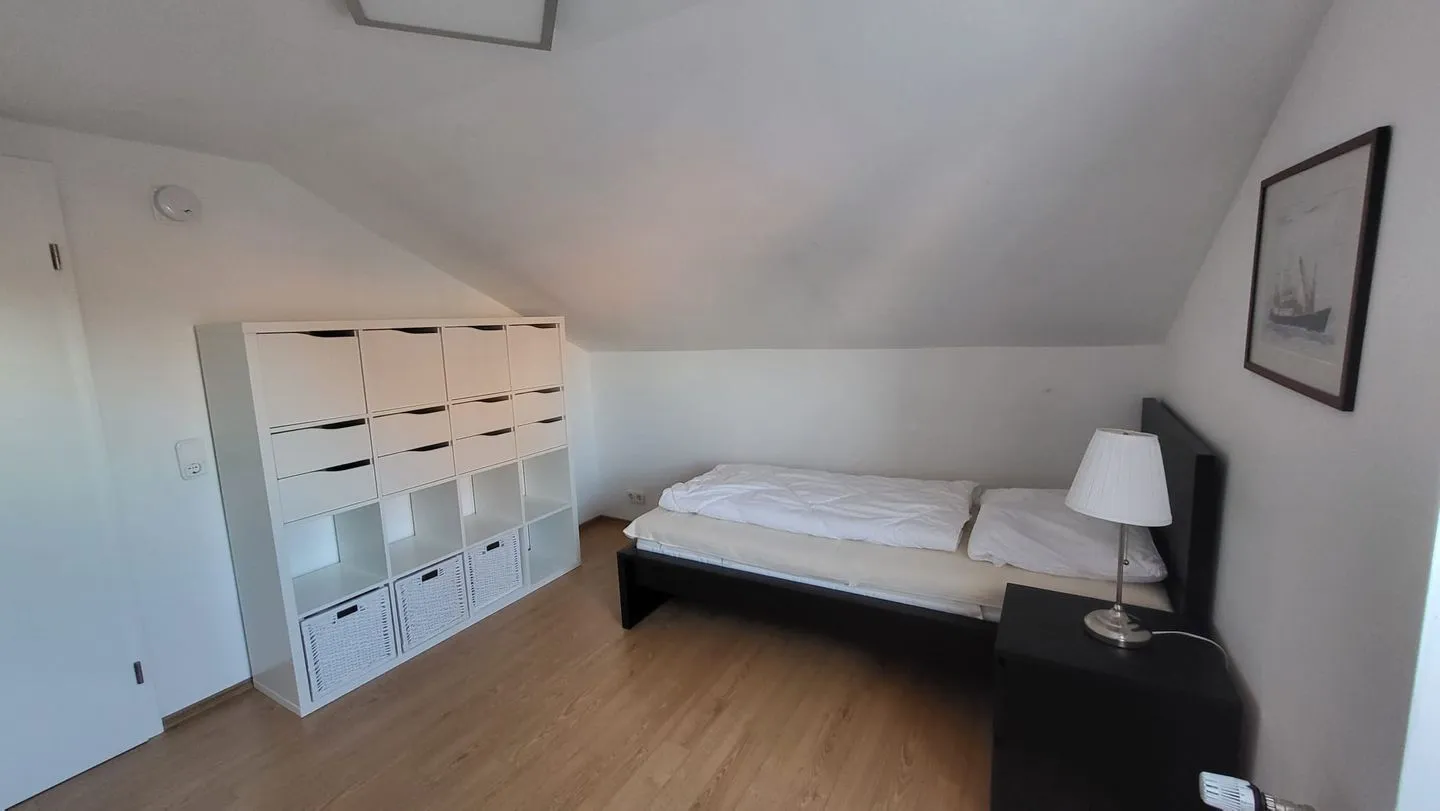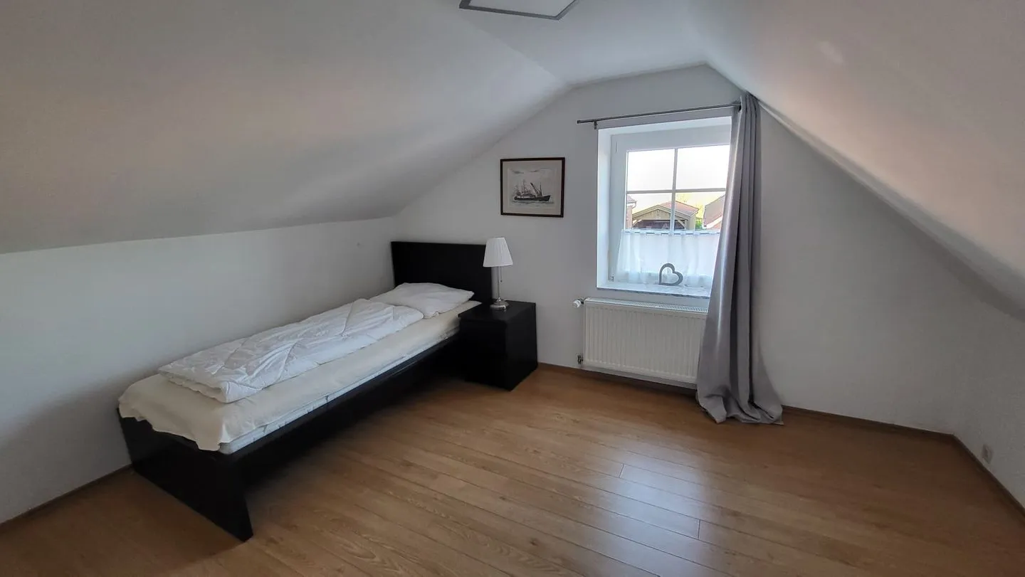 Im oberen Bereich erwarten Sie zwei weitere gemütliche Schlafzimmer, jeweils mit einem Einzelbett – ideal für Kinder, Freunde oder Gäste, die sich etwas zurückziehen möchten.