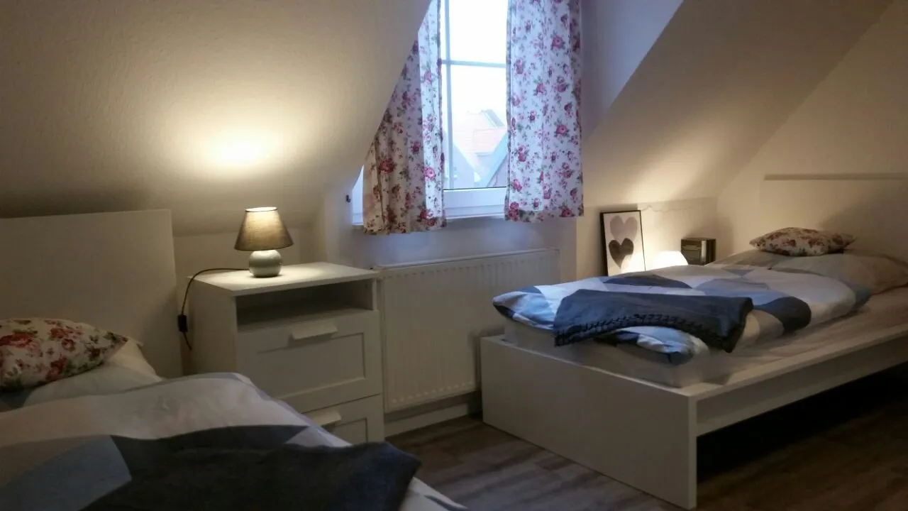 Das Haus Frauke ist eine Doppelhaushälfte mit einer Wohnfläche von 70 m². Das Ferienhaus befindet sich in einer Sackgasse und ist somit sehr ruhig gelegen - ideal zum entspannen. Zu den Zwillingsmühlen ist es nicht weit. Kommen Sie herein! Im hellen lichtdurchfluteten Wohnzimmer erwartet Sie eine gemütliche Couchgarnitur, ein Smart-TV und eine Sharp-Musikanlage mit Bluetoothverbindung und digitalem Radio, sowie CD/MP3 und Aux. Hier befindet sich ebenso der Essbereich vor dem Erker. Dieser lädt zu gemütlichen Abenden zum Essen und Klönen ein. Die angrenzende neuwertige Küche (von 2023) ist komplett ausgestattet. Direkt vom Wohnzimmer haben Sie Zugang zur Terrasse, wo Sie die Sonne genießen und sich den frischen Wind um die Nase wehen lassen können. Der Garten ist mit einer Hecke und einem Wall umgeben. Das Gäste-WC komplettiert das EG. Die Waschmaschine steht im Abstellraum bereit. Im Obergeschoss liegen die beiden Schlafzimmer, eines mit Doppelbett und eines mit zwei Einzelbetten, die mit modernen weißen Möbeln ausgestattet sind. Hier lässt es sich wohlig entspannen und träumen. Auf dieser Etage befindet sich auch das Badezimmer mit Dusche und WC. Im Dachgeschoß gibt es noch eine Spielecke für die Kleinen. WLAN ist verfügbar! Vor dem Haus steht ein Parkplatz zur Verfügung. Ihr Hund ist hier herzlich willkommen!
