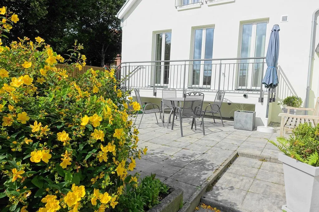 Gerne können Sie auf der Gemeinschaftsterrasse (zusammen mit der OG-Wohnung Weeto) die Sonne und die frische Nordseeluft genießen. WLAN ist verfügbar! Ein verschließbares Gartenhaus für mitgebrachte Fahrräder steht zur Verfügung. Der PKW-Stellplatz befindet sich direkt hinter dem Haus (Zufahrt über die Straße "Zum Bollwerk").