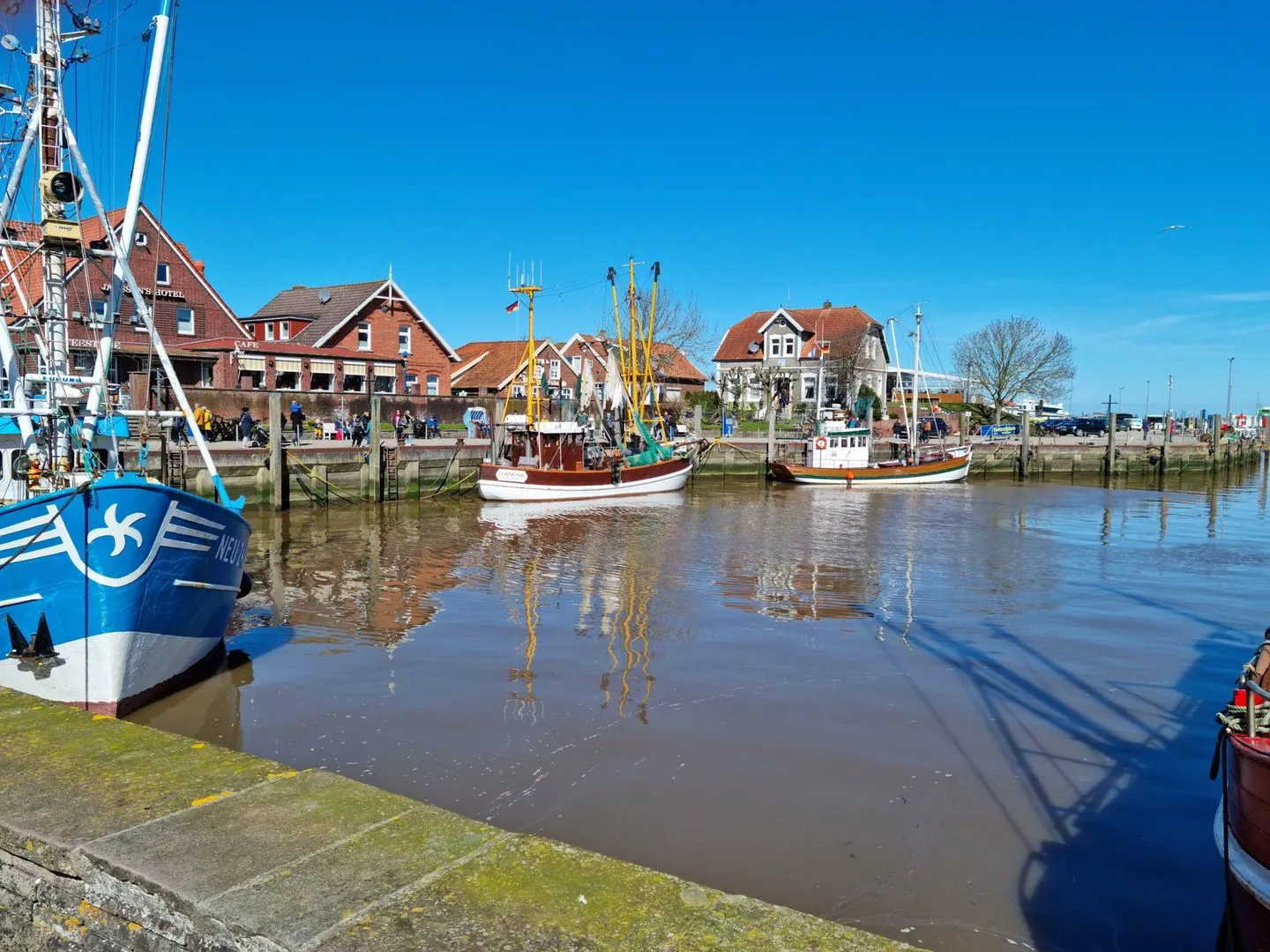 Die Wohnung Hafenperle befindet sich direkt hinter dem Hafendeich. In nur wenigen Schritten erreichen Sie den Fischerhafen Greetsiel mit seinen Fischkuttern. Hier können Sie gemütlich Café trinken oder frischen Fisch essen und dabei den wundervollen Ausblick auf den Hafen genießen. Zum Ortskern sind es ebenfalls nur ein paar Gehminuten.