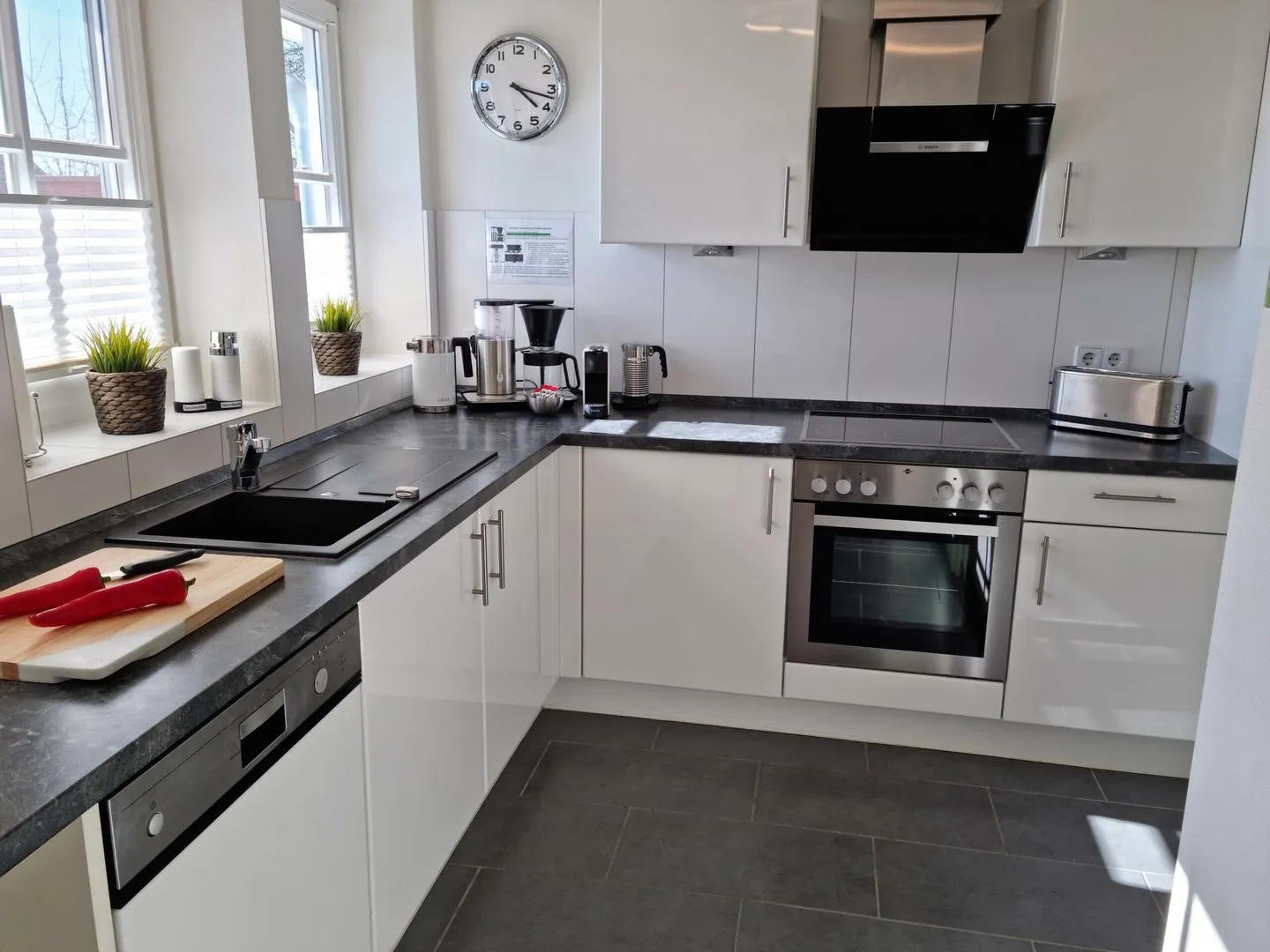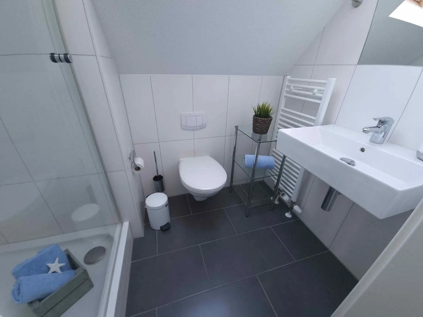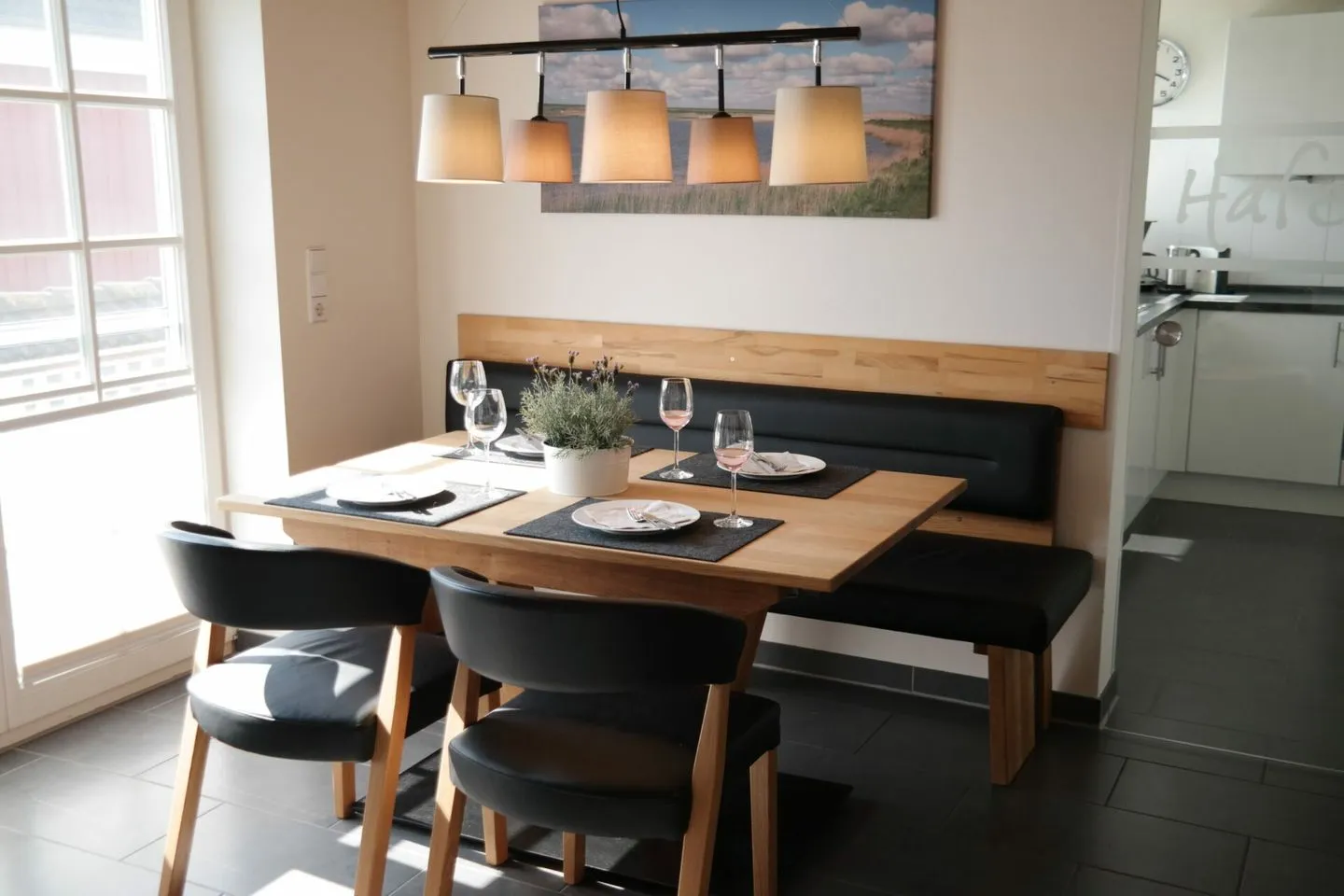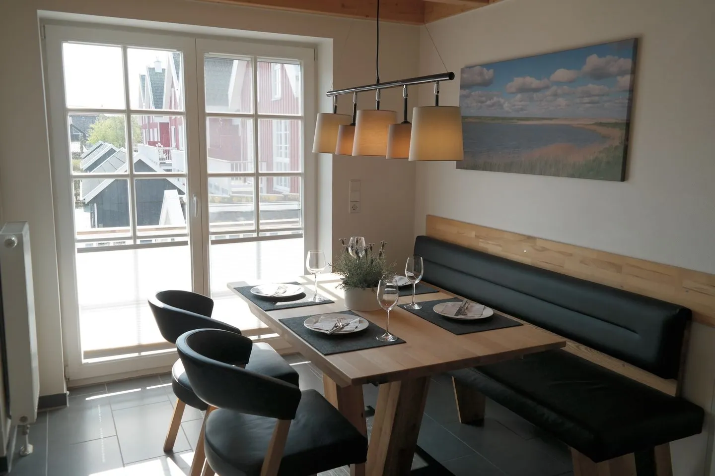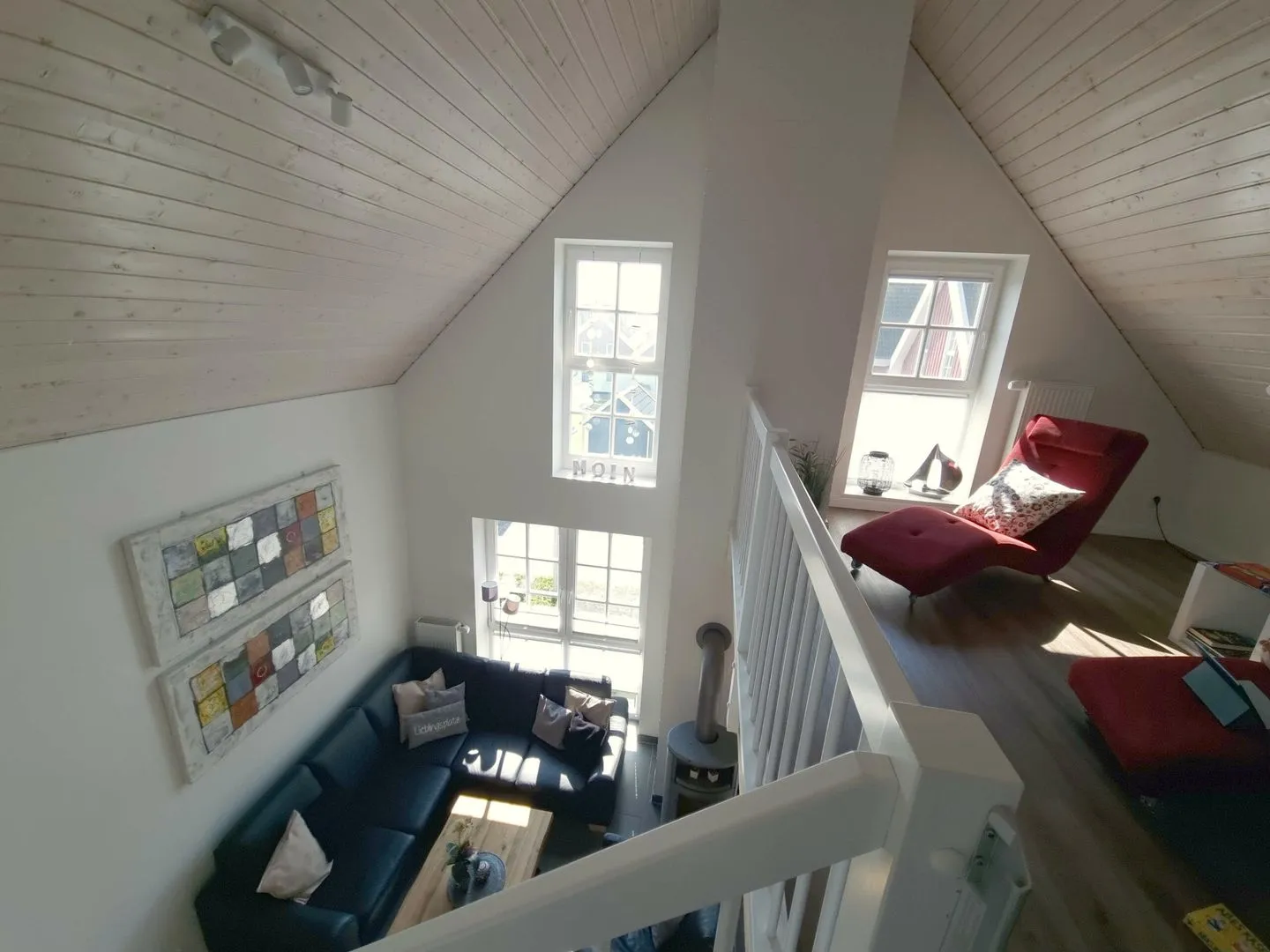 Die Ferienwohnung Hafenperle befindet sich in Toplage in unmittelbarer Nähe des Fischerhafens. Die geräumige Maisonettewohnung für bis zu 6 Personen mit Whirlpool, Sauna und Kaminofen lässt keine Wünsche offen und macht Ihren Urlaub unvergessen! Kommen Sie herein! Vom Flur gelangen Sie in den offenen Wohn-/Essbereich mit Galerie. Auf der gemütlichen Couch können Sie entspannen und relaxen. Der Kamin lädt zu kuschelige Stunden ein. Die Galerie bringt Ihnen viel Licht und ein weitläufiges Wohngefühl. Am großen Esstisch kann gemeinsam gegessen und geklönt werden. In der voll ausgestatteten modernen Küche lassen sich tolle Gerichte zaubern. Das helle Badezimmer verfügt über eine Dusche und einen Whirlpool. Das I-Tüpfelchen ist die Sauna, wo Sie Ihren persönlichen Wellnesstag erleben können. Ein Schlafzimmer mit Doppelbett befindet sich ebenfalls auf dieser Etage. Wenn Sie die Treppe hinaufgehen, gelangen Sie auf die Galerie. Hier stehen Relaxliegen zur Erholung bereit. Oben befindet sich auch das zweite helle Duschbad. Nebenan stehen 2 weitere Schlafzimmer, eines mit Doppelbett und eines mit 2 Einzelbetten, für erholsame Nächte zur Verfügung. Alle Räume sind mit Fliesen- oder Vinylboden ausgestattet. Auf dem großzügigen Balkon in perfekter Süd-West-Lage können Sie die Ruhe, Sonne und die frische Nordseeluft genießen. WLAN ist verfügbar! Ein Abstellschuppen für mitgebrachte Fahrräder steht zur Verfügung. Dort gibt es für die kleinen Gäste auch einige Spielsachen. Der Parkplatz befindet sich direkt vor dem Haus. Ob als Paar, für die ganze Familie oder Urlaub mit Freunden - diese Ferienwohnung ist das ganze Jahr über ein unvergessliches Reiseziel!