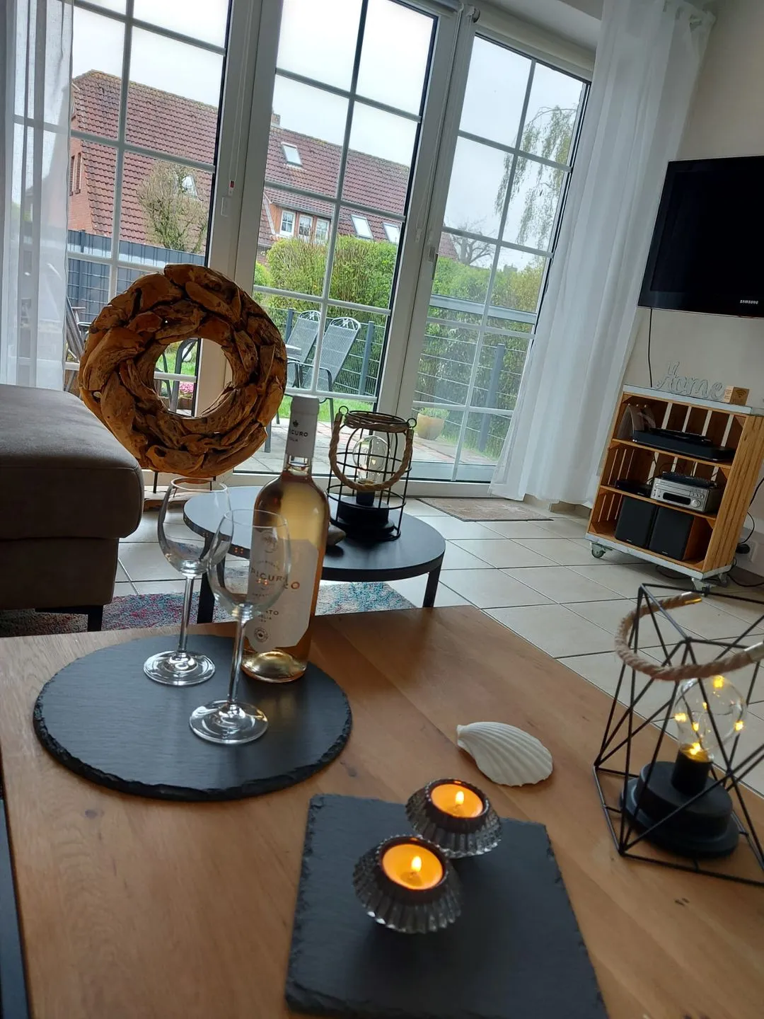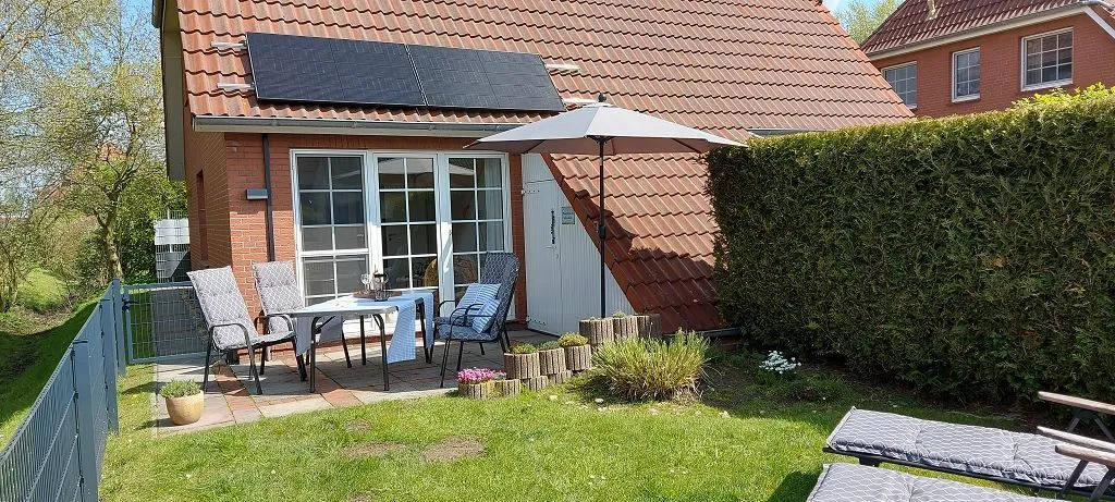 Das Ferienhaus Joana ist für max. 6 Personen geeignet. Das Haus ist sehr modern und hell mit weißen Möbeln eingerichtet. Kommen Sie herein! Durch den Flur gelangen Sie in den großzügigen Wohn-/Essbereich. Die Couchgarnitur ist sehr gemütlich und lädt zum Entspannen ein. Die große Fensterfront lässt in den Garten und auf die Terrasse blicken. Der große Flachbild-Fernseher rundet gemütliche kuschelige Abende ab. Am großen Fenster befindet sich der Essbereich . Hier kann sich die ganze Familie zum Klönen und gemeinsamen Essen versammeln. Die neuwertige Küche ist offen gehalten und lässt das Herz des Hobbykochs höher schlagen. Mikrowelle, Geschirrspüler, Kaffeepad- und Filterkaffeemaschine usw. stehen hier bereit. Ebenfalls ist eine Waschmaschine vorhanden. Im unterem Bereich finden Sie noch ein helles Gäste-WC. Im Obergeschoß stehen 2 großzügige Schlafräume zur Verfügung. Durch die gemütlichen Möbel finden Sie schnell in den Schlaf und träumen schön. Das erste Schlafzimmer ist mit einem Doppelbett, das zweite mit 2 Einzelbetten ausgestattet. Auf dieser Etage liegt auch das weiß geflieste Badezimmer mit ebenerdiger Dusche, WC, großem Spiegel und Handwaschbecken. Das I-Tüpfelchen ist das ausgebaute Dachgeschoß, das noch ein Rückzugsort zum Relaxen mit einem Schlafsofa (für max. 2 Personen) und Flachbild-TV bietet. Dieses erreichen Sie über das 2. Schlafzimmer. Auf der geschützten Terrasse kann man die Nordseeluft bei einer Tasse Ostfriesentee genießen. Die Sonnenliegen im Garten laden zum Sonne tanken ein. Im kleinen Schuppen können mitgebrachte Fahrräder o. ä. untergestellt werden. Ihr Hund ist im Haus Joana herzlich willkommen! Das Objekt ist mit vielen liebevollen Details eingerichtet! Der Parkplatz befindet sich am Haus. WLAN ist verfügbar! Unter www.ferienhaus-joana.de finden Sie noch weitere Informationen.