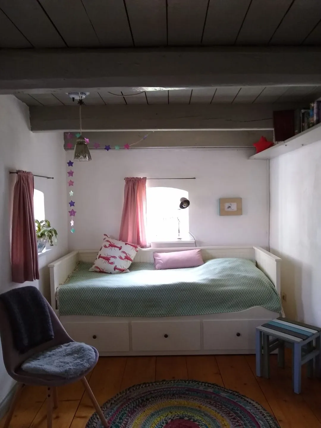 Das Haus wurde in seinem ursprünglichen Charakter erhalten und bietet seinen Gästen ein Höchstmaß an Wohlbefinden und Behaglichkeit. Sogar ein Butzenbett ist noch vorhanden. Im großen Garten mit altem Baumbestand lässt es sich prima Entspannen.