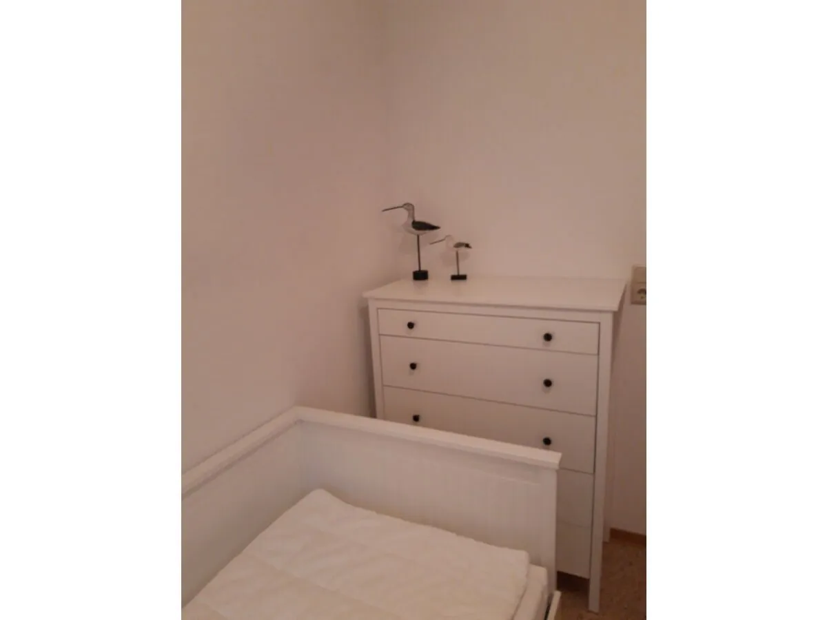 Die Wohnung verfügt über ein Schlafzimmer mit Doppelbett. Das zweite helle Schlafzimmer hat ein Einzelbett, das bei Bedarf zu einem Doppelbett umfunktioniert werden kann. Das Badezimmer beinhaltet eine Dusche und ein WC. Sie haben alle Räume auf einer Etage, so dass sich auch Personen mit Gehbehinderung (Rollator) gut in der Wohnung bewegen können. Nur die Duschwanne hat einen kleinen Einstieg. Vom Wohnbereich gelangen Sie auf die Sonnenterrasse, die mit gemütlichen Gartenmöbeln ausgestattet ist. Ein Schuppen für mitgebrachte Fahrräder steht zur Verfügung. WLAN ist vorhanden. Der Parkplatz befindet sich gegenüber des Hauses (Parkplatz Nr. 7).