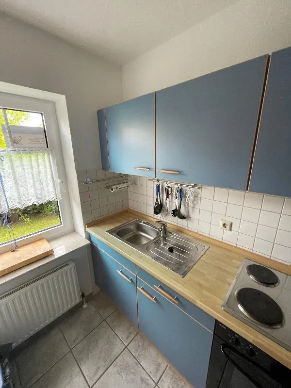 Diese schöne Ferienwohnung befindet sich im Erdgeschoß des Hauses und überzeugt durch eine ruhige Lage in einer Sackgasse. Das Objekt hat eine Wohnfläche vom 50m² und bietet Platz für max. 3-4 Personen. Der großzügige Wohn- und Essbereich ist sehr hell und freundlich. Der mit bodenlangen Fenstern versehene Erker ermöglicht Ihnen den Zugang zur großen Terrasse, wo Sie die Sonne und die frische Luft genießen können. Gerne darf dort auch gegrillt werden (Grill nicht vorhanden). Der Wohnbereich ist mit einer gemütlichen Couchgarnitur, 2 Sessel und einem Flachbild-TV ausgestattet. Der Esstisch lädt zum gemütlichen Beisammensein und Klönabende ein. Die separate Küche liegt nebenan.