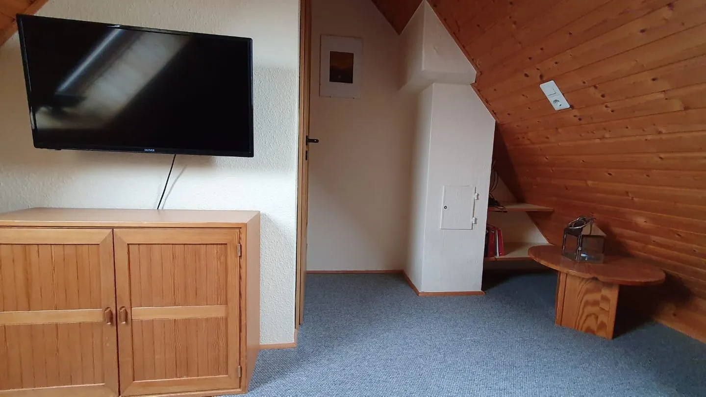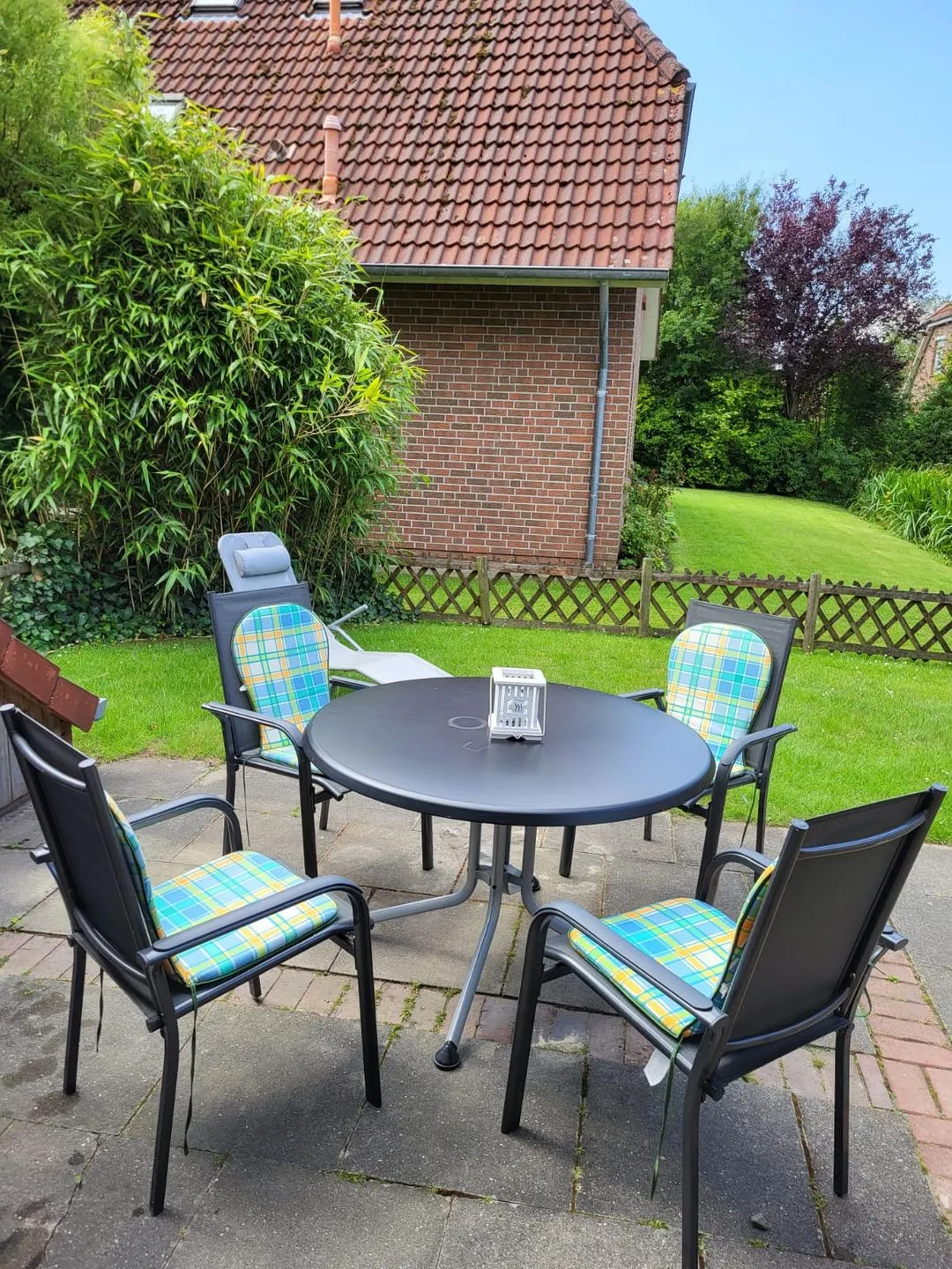 Willkommen im Ferienhaus Mupfel! Die helle gemütlich eingerichtete Doppelhaushälfte sorgt für Entspannung in Ihrem Urlaub. Es liegt in einer ruhigen Seitenstraße, ca. 5 Minuten zu Fuß zum Ortskern. Treten Sie ein! Durch den Flur gelangen Sie in den hellen Wohn- und Essbereich. Der Wohnbereich bietet eine gemütliche Ledercouch und 2 Sessel. Mit Flachbild-TV, Micro-Musikanlage können Sie entspannte Stunden genießen. Auch der Kamin lädt zu ruhigen (Kuschel-)Abenden ein. Von hier gelangen Sie auf die Terrasse, wo Sie die Seeluft genießen und sich den frischen Wind um die Nase wehen lassen können. Am großen Esstisch können bis zu 6 Personen z. B. das Abendessen genießen, Klönen, Spieleabende veranstalten usw. Sie blicken von hier direkt in den Garten. Angrenzend befindet sich die separate Küche mit Kühlschrank, Gefrierfach, Backofen, Cerankochfeld, Geschirrspüler, Mikrowelle und umfangreicher Ausstattung (z. B. Kaffeemaschine, Toaster, Eier- und Wasserkocher). Ein Telefonanschluß mit kostenfreier Einwahlmöglichkeit in das deutsche Festnetz finden Sie im Flur. WLAN ist ebenfalls verfügbar. Im Erdgeschoß gibt es noch ein Gäste-WC. Im Obergeschoß befinden sich 2 Schlafräume, eines mit einem Doppelbett und eines mit Einzelbetten. Ein Kinderbett, ein Hochstuhl sowie ein Wickeltisch stehen für die Kleinen bereit. Hier kommen Sie auch in das helle Duschbad. Durch das zweite Schlafzimmer gelangen Sie zum Schlafraum im Dachgiebel, wo ebenfalls noch 2 Einzelbetten stehen. Hier gibt es einen Relaxsessel und ein Flachbild-TV - Entspannung pur. Alle Fenster verfügen über Außenrollos! Eine Waschmaschine, Bügelbrett/-eisen, eine Wäschespinne für den Außenbereich stehen für die Wäschepflege zur Verfügung. Abstellkammern sind im Innen- und Außenbereich vorhanden. Zum Haus gehört ein eigener Parkplatz auf dem Gelände der Eigentumsanlage.