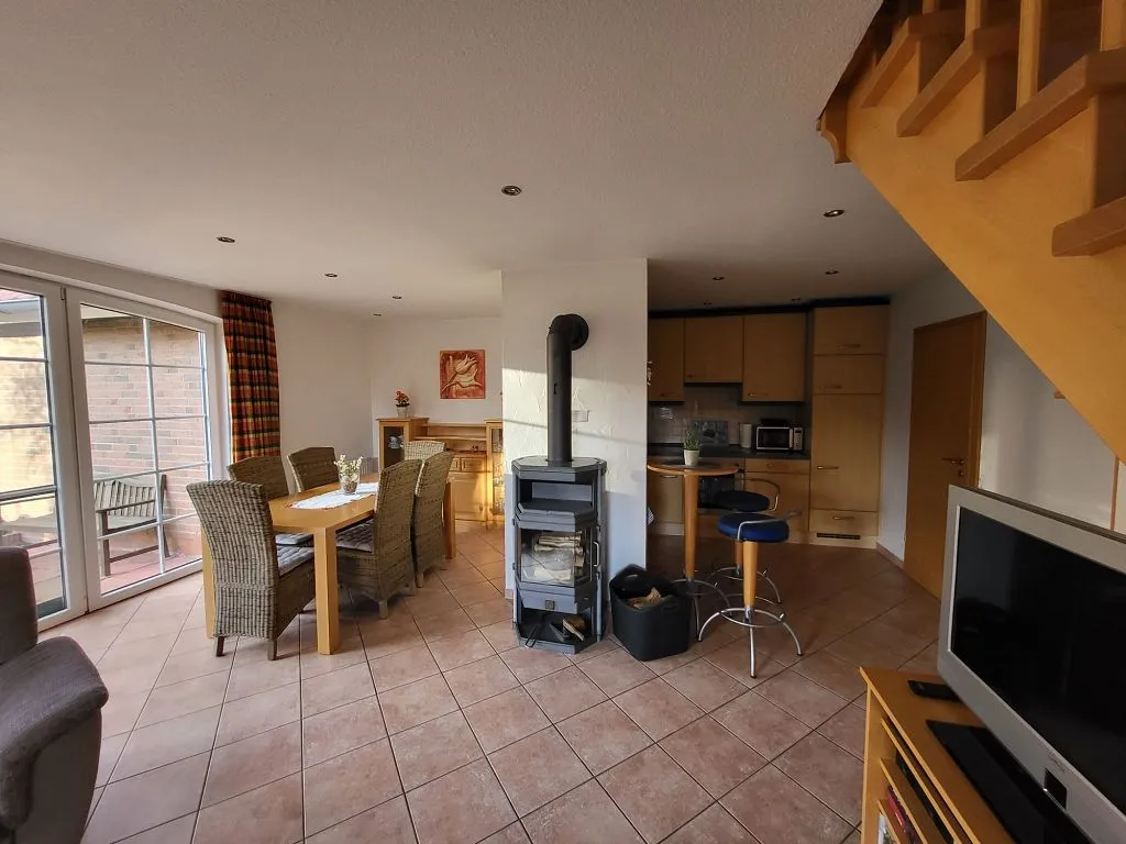 Moin, kommen Sie herein in das gemütliche komfortable Ferienhaus! Das Objekt befindet sich direkt am Deich. Vom kleinen Flur gelangen Sie in den großzügigen Wohn-Essbereich mit Küche. Die gemütliche Couch lädt zum Relaxen und Entspannen ein. Für Unterhaltung sorgt ein Flachbild-TV. Der Esstisch bietet Platz für die ganze Familie. Klönen bei einer Tasse Ostfriesentee mit Aussicht in den Garten sorgt fürs Wohlfühlen. Jeder Hobbykoch wird sich über die gut ausgestattete Küche freuen. Ebenfalls befindet sich ein helles Bad im EG. Dieses ist mit WC, Bidet, Dusche und Sauna ausgestattet. Nach einem langem Deichspaziergang können Sie sich ein paar Wellnessstunden in der Sauna gönnen. Ein Schlafzimmer mit Doppelbett komplettiert das Erdgeschoß. Über die Treppe gelangen Sie ins Obergeschoß, wo Sie zusätzlich 2 Schlafzimmer finden. Träumen Sie herrlich. Vom Schlafraum mit Doppelbett haben Sie eine schöne Aussicht auf die Deichlandschaft. Ebenso steht ein zweites Duschbad auf dieser Etage zur Verfügung. Vom Essbereich erreichen Sie die geschützte Terrasse. Lassen Sie sich hier die frische Nordseeluft um die Nase wehen und entspannen Sie bei einem Sonnenbad. Ein Gartenhäuschen zum Unterstellen von mitgebrachten Fahrrädern kann benutzt werden. Es gibt 2 Parkplätze am Haus. WLAN ist verfügbar.