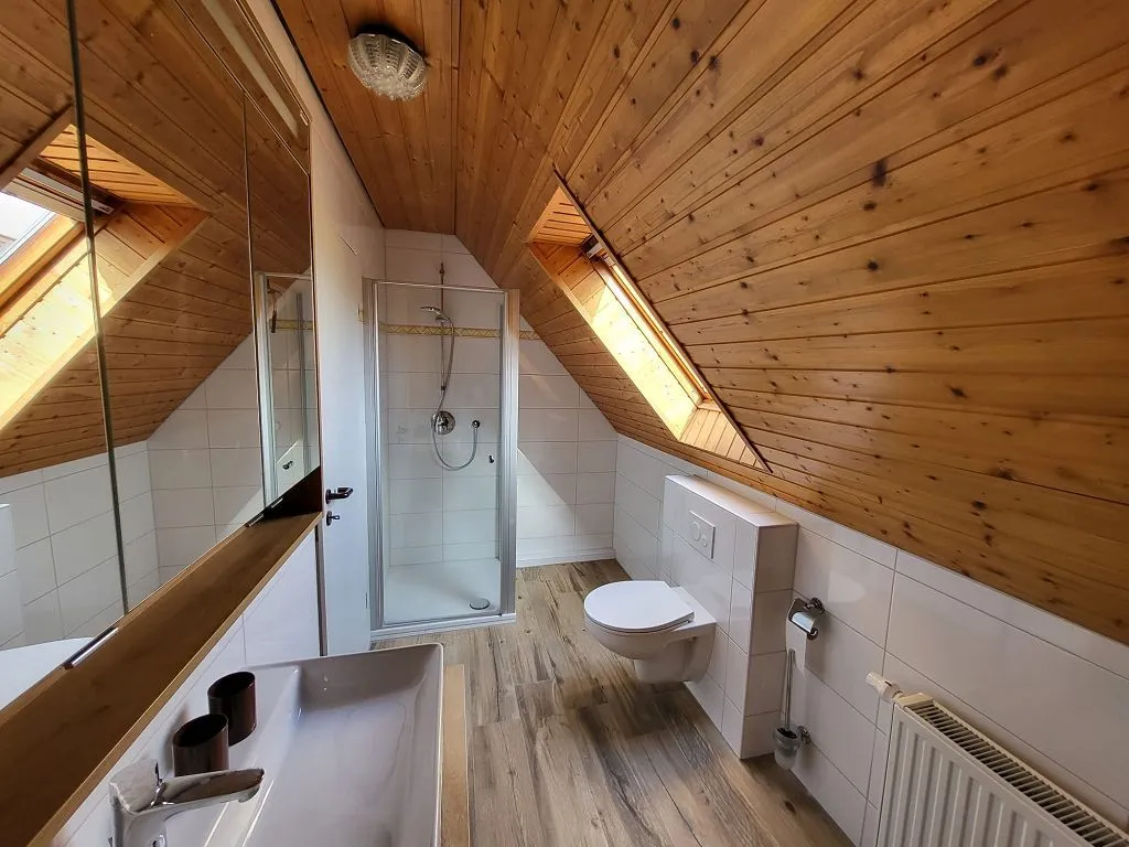 Schönes modernes Bad. Schlüsselübergabe hat super funktioniert,trotz Feiertagsanreise. Sehr freundliche und hilfsbereite Mitarbeiterin.