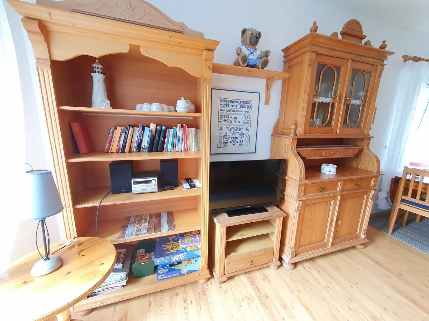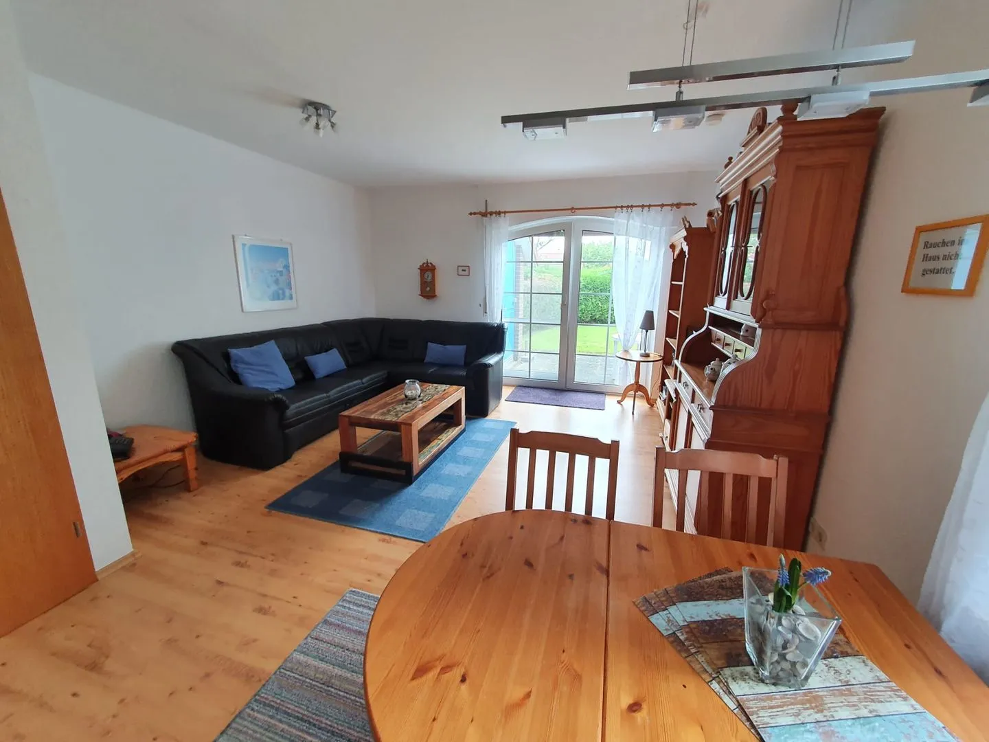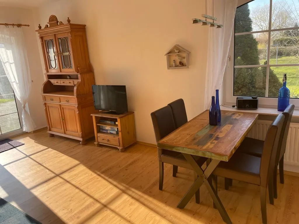 Das Doppelhaushälfte Uns Moi Hus wurde 2018 komplett renoviert. Kommen Sie herein! Der Eingangsbereich bietet einen kleinen Flur mit Garderobe. Von dort gelangen Sie in den hellen Wohn- und Essbereich, wo eine gemütliche Couch sowie ein Flat-TV zum Verweilen einladen. In der offenen Küche (mit Geschirrspülmaschine, Mikrowelle, Cerankochfeld, Backofen und Kühlschrank mit separaten Gefrierfach) lassen sich leckere Speisen zubereiten. Der Esstisch am Fenster lädt zu gemütlichen Abendessen und Klönabende ein. Im Obergeschoss befinden sich 2 geräumige Schlafzimmer, eines mit Doppelbett (1,80 m) sowie eines mit zwei Einzelbetten. Hier liegt auch das helle Bad mit Dusche und WC. Ein separates Gäste-WC ist im Erdgeschoss vorzufinden. In den Wohn- und Schlafräumen ist hochwertiges PVC-Laminat verlegt und an den Fenstern befinden sich Insektenschutzgitter. Außenrollos sind vorhanden. Vom Wohnzimmer aus erreichen Sie die sonnige Terrasse, die mit Gartenmöbeln ausgestattet ist. Hier kann man wunderbar relaxen und sich den frischen Wind um die Nase wehen lassen. Ein angrenzender Abstellbereich bietet Platz für mitgebrachte Fahrräder. WLAN ist verfügbar! Ein eigener Parkplatz befindet sich direkt am Haus ist.