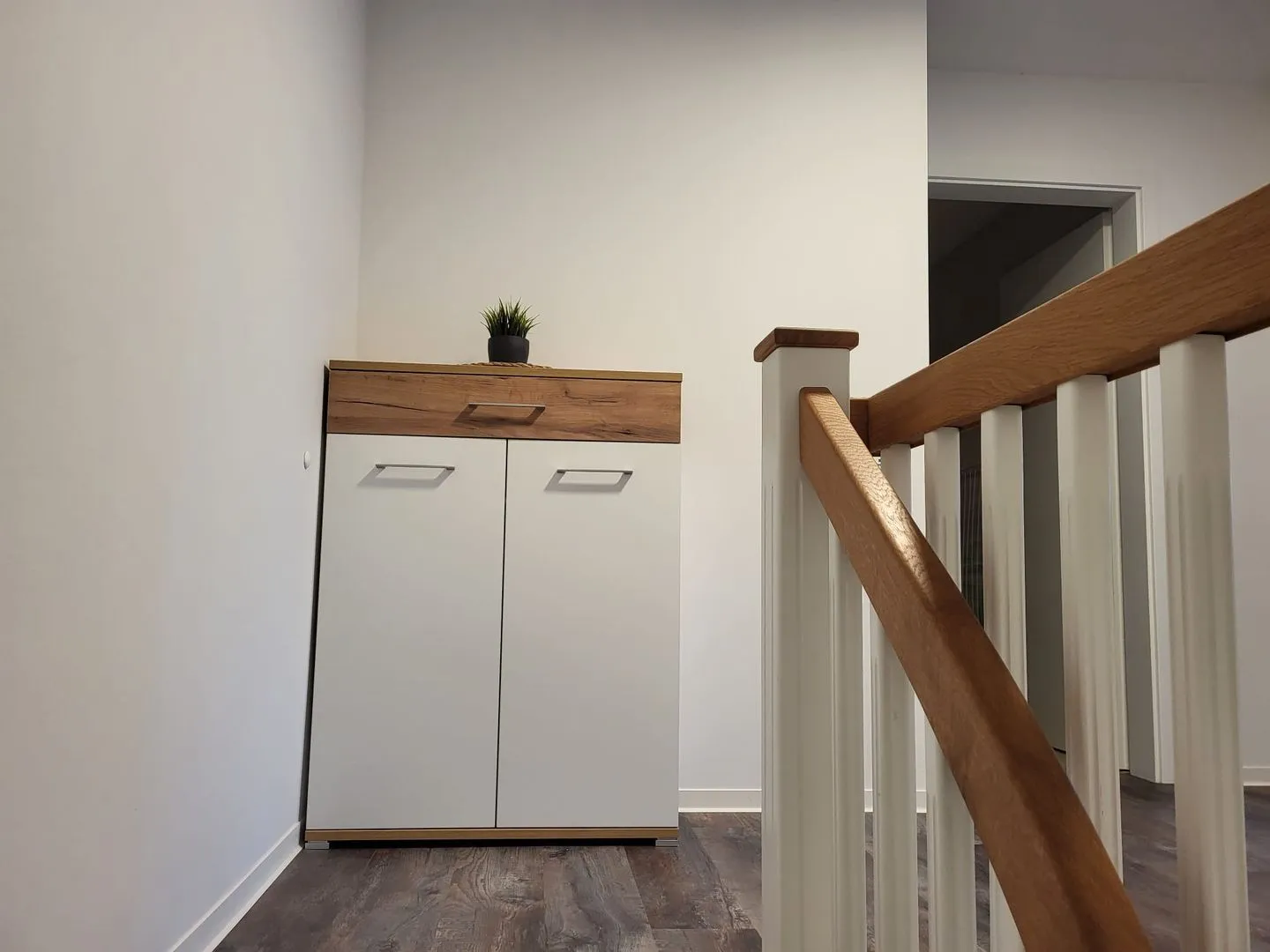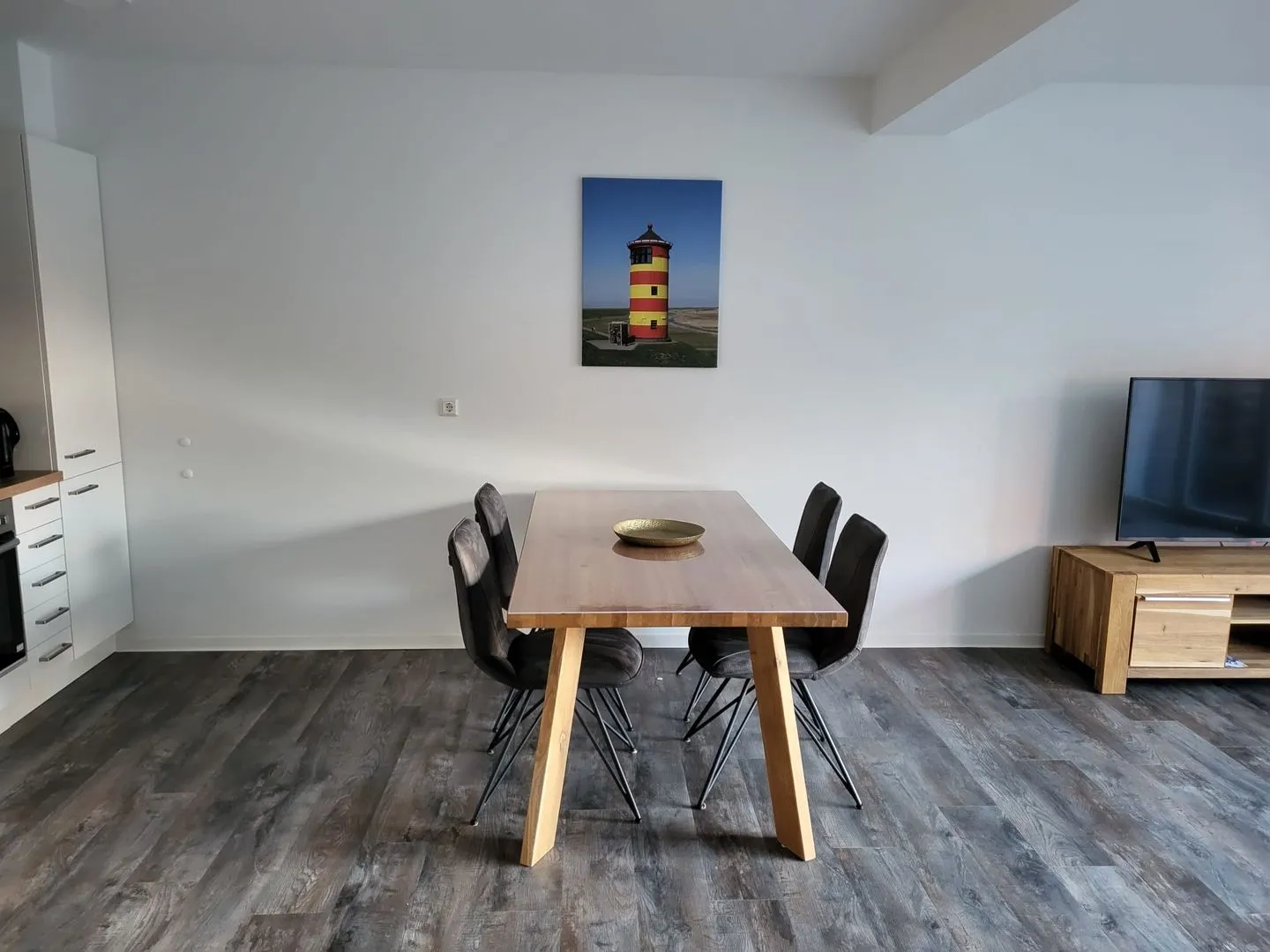 Die schöne helle Wohnung "Zum kleinen Leuchtturm" wurde Ende 2021 fertiggestellt. Sie befindet sich in einem Gulfhof in der Krummhörner Ortschaft Pilsum. Nach Greetsiel sind es ca. 3 km und gut mit dem Fahrrad zu erreichen. Kommen Sie herein in den Gulfhof! Vom großen Flur gelangen Sie in die 92 m² großen Wohnung. Im Erdgeschoß befindet sich der helle und großzügige Wohn- und Essbereich mit Küche. Relaxen Sie auf der gemütlichen Couch mit großem Flachbild-TV. Durch die großen Fensterfronten haben Sie immer genügend Licht und einen sehr guten Blick auf die Pilsumer Kreuzkirche. Hier ist auch der Zugang zur Terrasse. Diese lädt ein zum Entspannen und zum frische Nordseeluft schnuppern. Die weiße voll ausgestattete Küchenzeile lässt den Hobbykoch erstrahlen. Zubereitete Speisen können am großen Esstisch serviert werden. Hier findet die ganze Familie Platz. Über eine Treppe gelangen Sie ins Obergeschoß. Von einem kleinen Flur erreichen Sie das moderne Duschbad mit Waschmaschine. Nebenan kann im Schlafzimmer mit Doppelbett angenehm geträumt werden. Ein zusätzliches Schlafzimmer mit 2 Einzelbetten komplettiert die obere Etage. In beiden Schlafräumen befinden sich je ein Flachbild-TV. WLAN ist verfügbar!